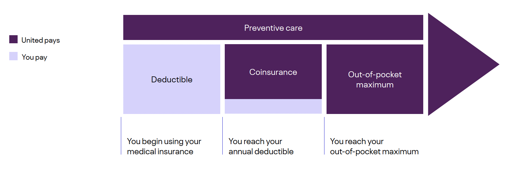 The amount you are responsible for paying before the plan begins to pay a percentage of covered expenses. Typically, if you select a higher deductible plan, it means you’ll pay a lower monthly premium.